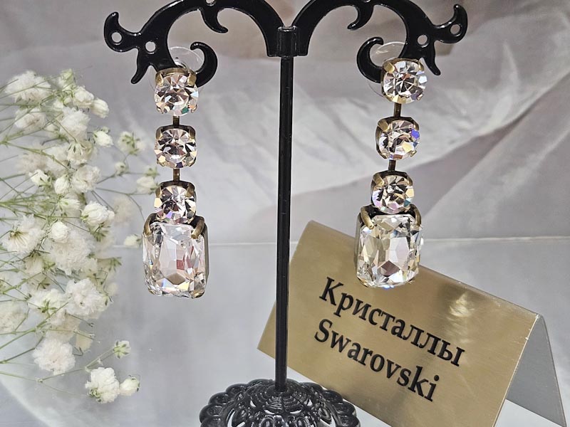 Гипоаллергенный металл, покрытие гальваника, украшены кристаллами Swarovski.